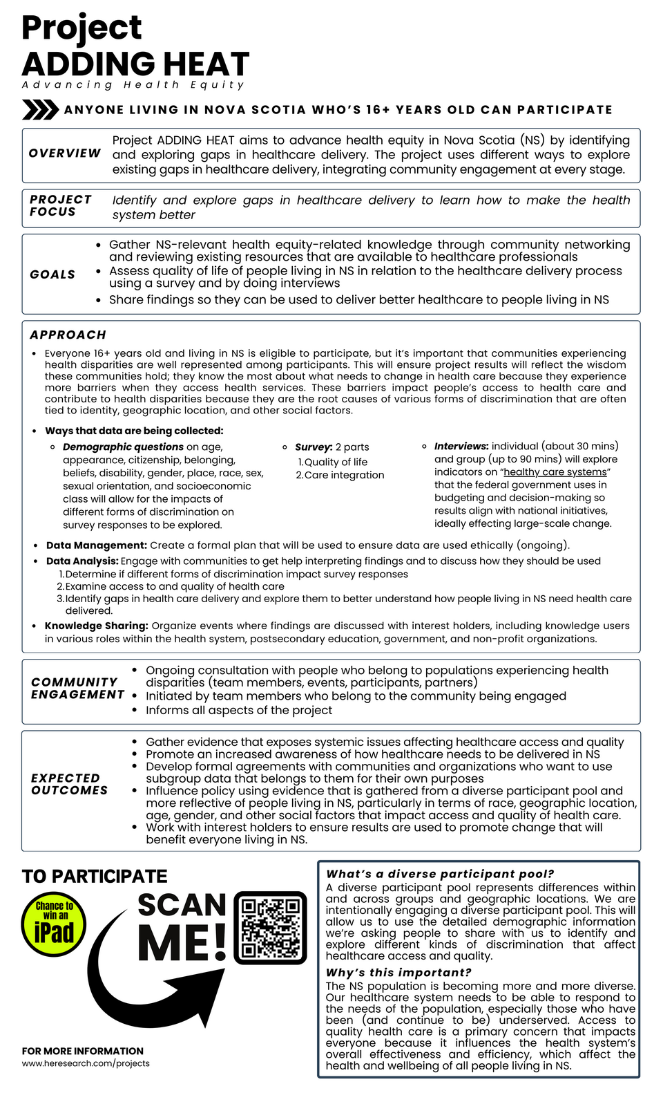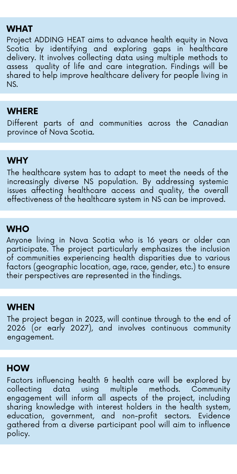 We're looking for collaborators to get involved in a project called: Advancing Health Equity in NS by Exploring Gaps in Healthcare Delivery.